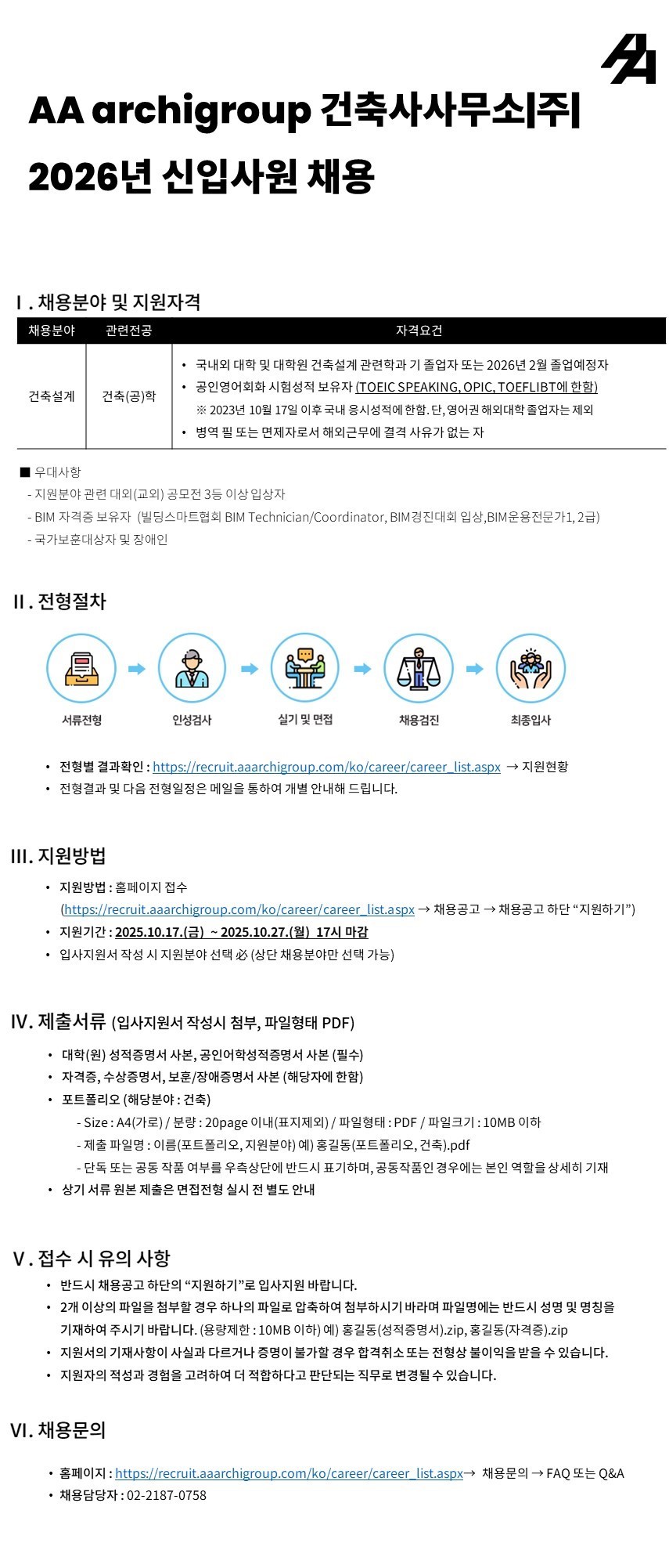 | 제목 | [에이에이아키그룹건축사사무소] 2026년 신입사원 채용 공고 안내 | ||||